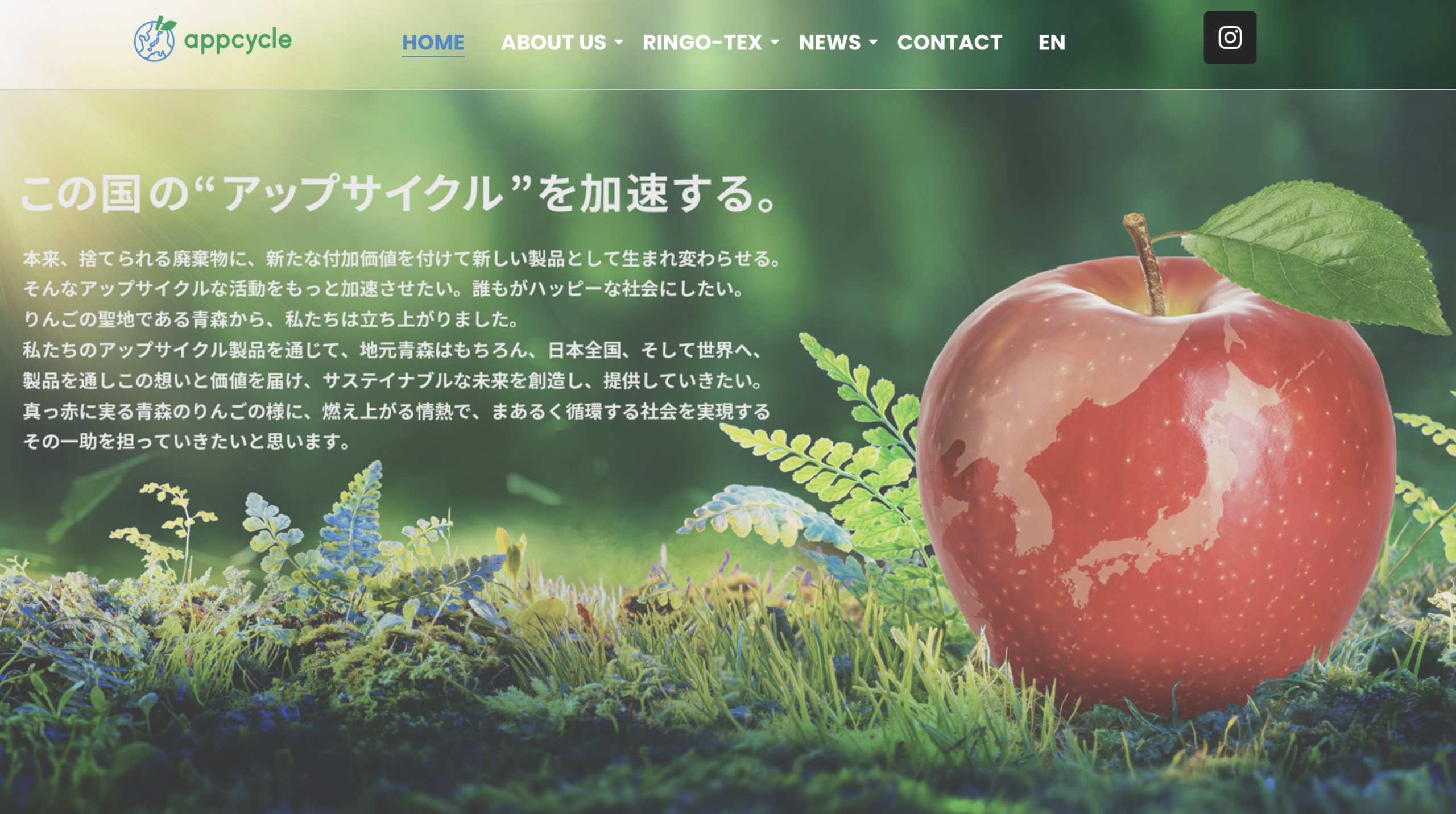 appcycle は2022年5月に設立。東北大学との連携によって、りんごの残渣をアップサイクルしたエシカルレザー RINGO-TEX を開発した。