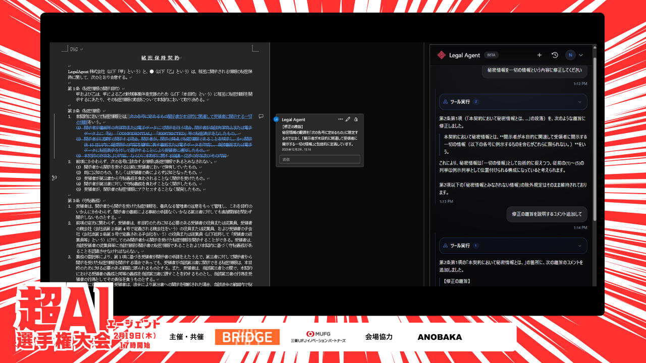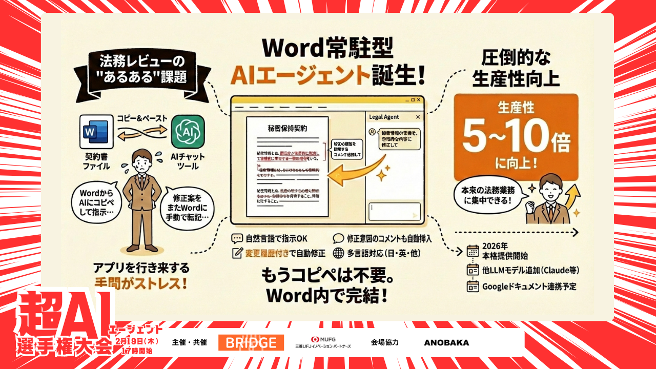 契約書レビューを「5〜10倍」効率化——Legal Agent の AI エージェントが変える法務の働き方【2月19日超AIエージェント選手権・出場者紹介 No.1】